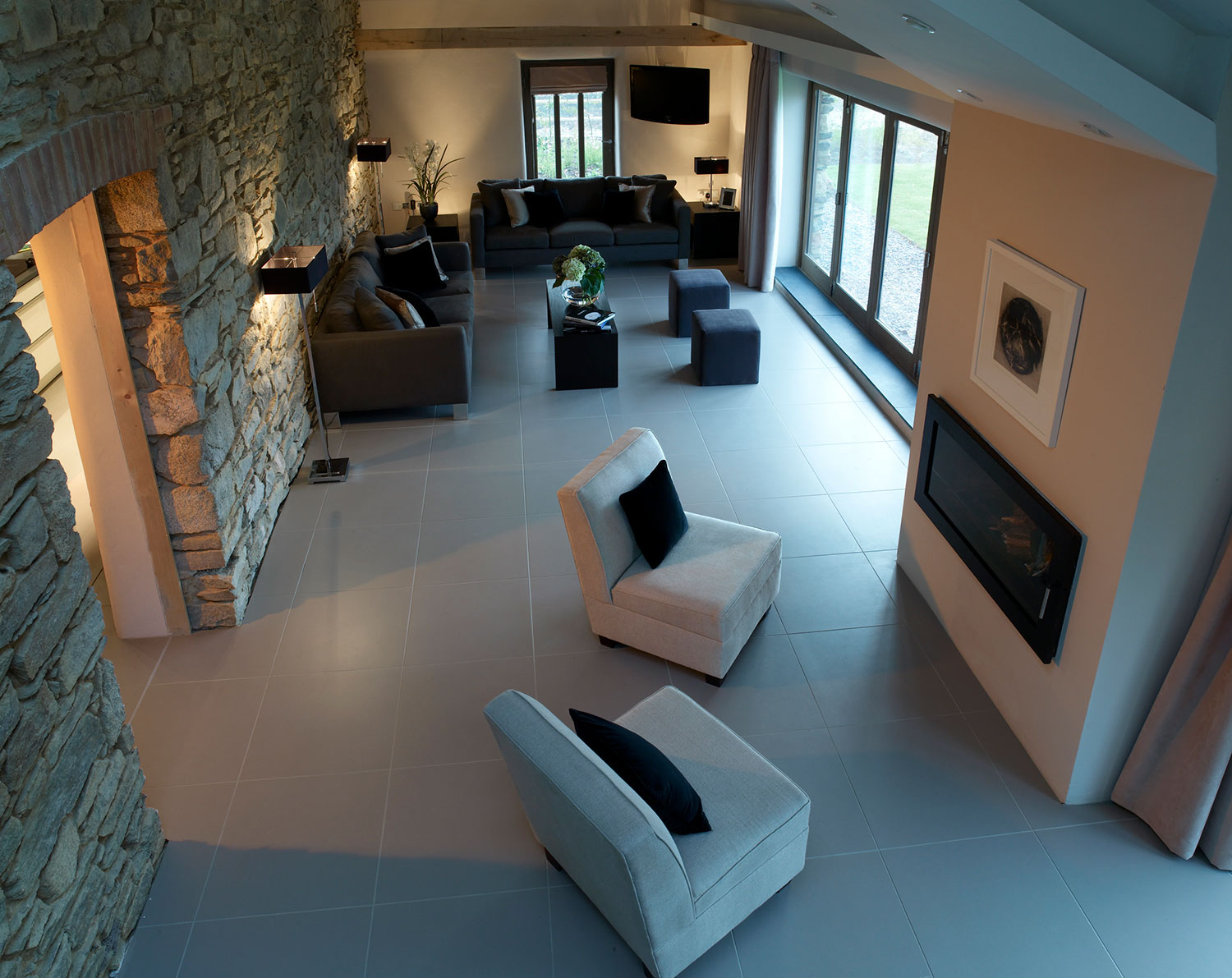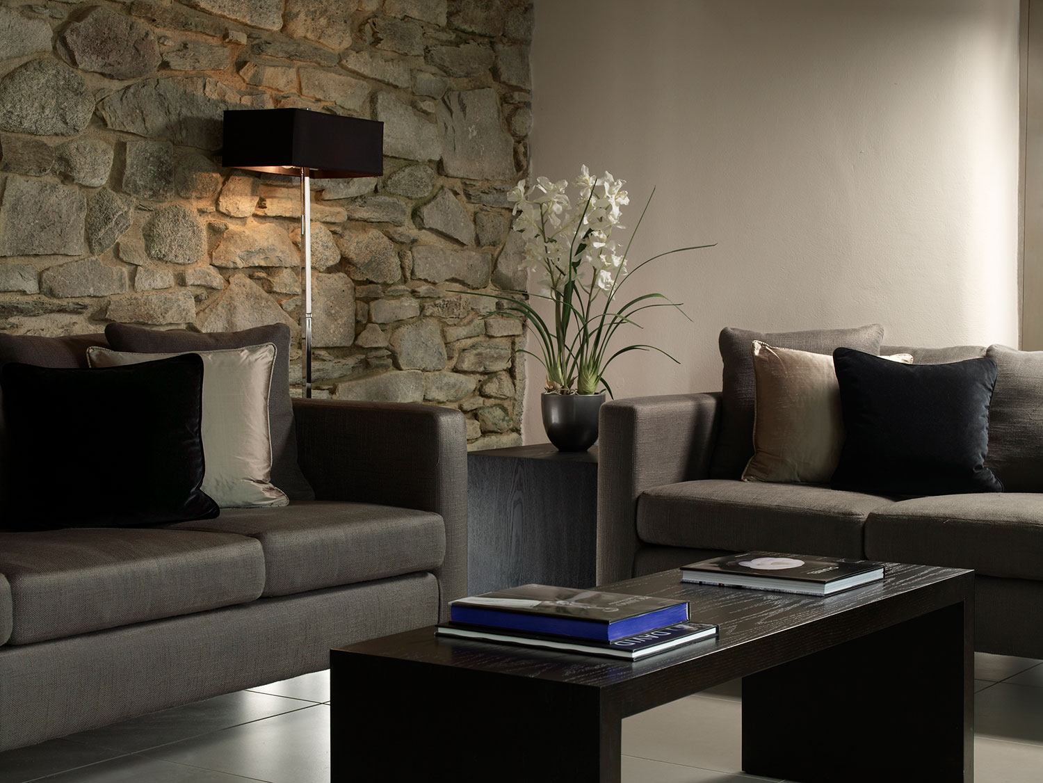 The design brief for Trevenna was to create a warm, comfortable, harmonious space for guests to feel ‘home from home’. The emphasis was on providing luxury accommodation that was sympathetic to the surrounding countryside and architecture of the barns. It was important to link the outside with the inside creating a seamless flow between the two. Key elements were taken from the surrounding landscape such as the traditional Cornish stone, slate and wood and these were combined with more contemporary furniture and fabrics.